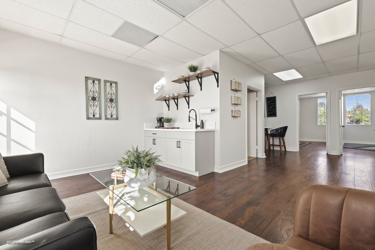 Enjoy the Co-Working office amenities without the crowd. Newly renovated. This suite consists of only four offices. Featuring mid-century modern decor, a fully equipped kitchenette with quartz countertops, a reception lounge, and supplies station. Currently available for lease: Two larger furnished offices with abundant natural light and one unfurnished interior office. High exposure location with ample on-site parking. Other building tenants to include a Medical Billing Company, Hair Salon, Attorney, Therapist, Property Manager, and Bridal Boutique. One year lease terms required. $475.00 per month to $675.00 per month.